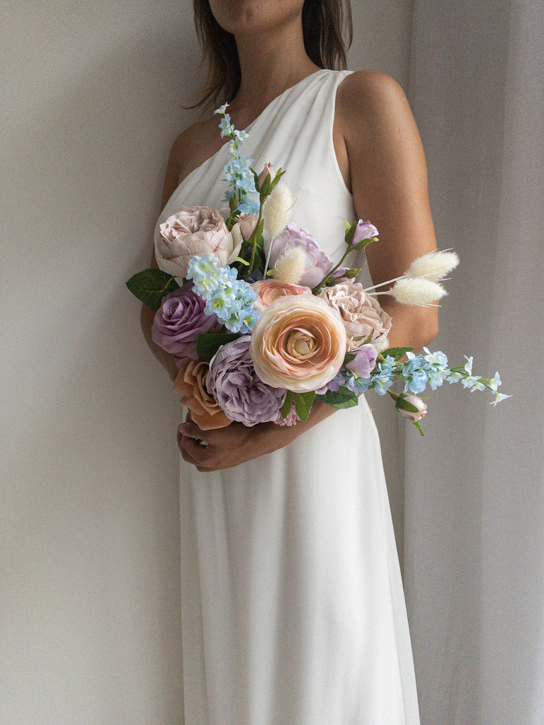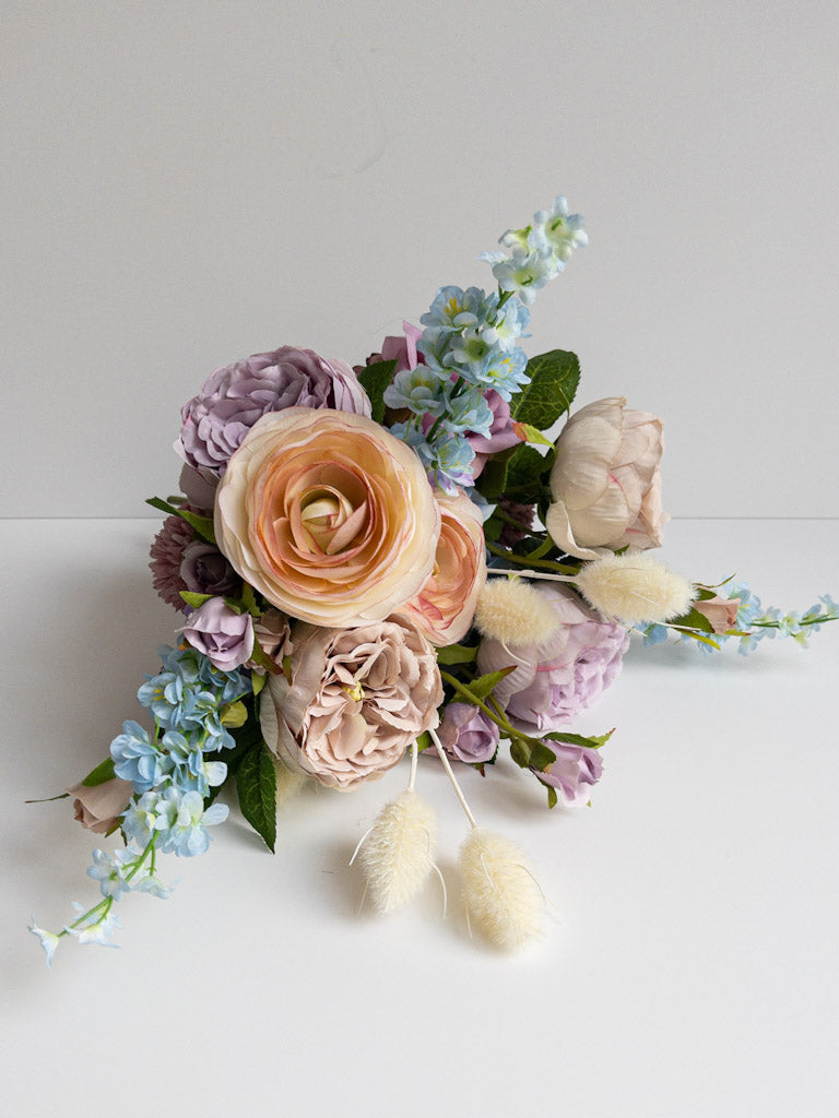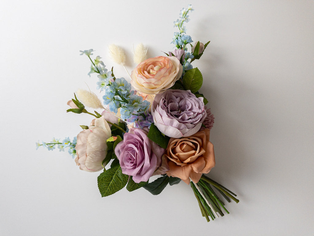Het bruidsboeket uit de Alex collectie is een vrolijk, romantisch luxe veldboeket voor eigentijdse bruiden. De zachte pasteltinten komen samen in een nonchalant ontwerp dat elke bruid doet stralen. Het boeket sluit ook mooi aan bij de Billy collectie.