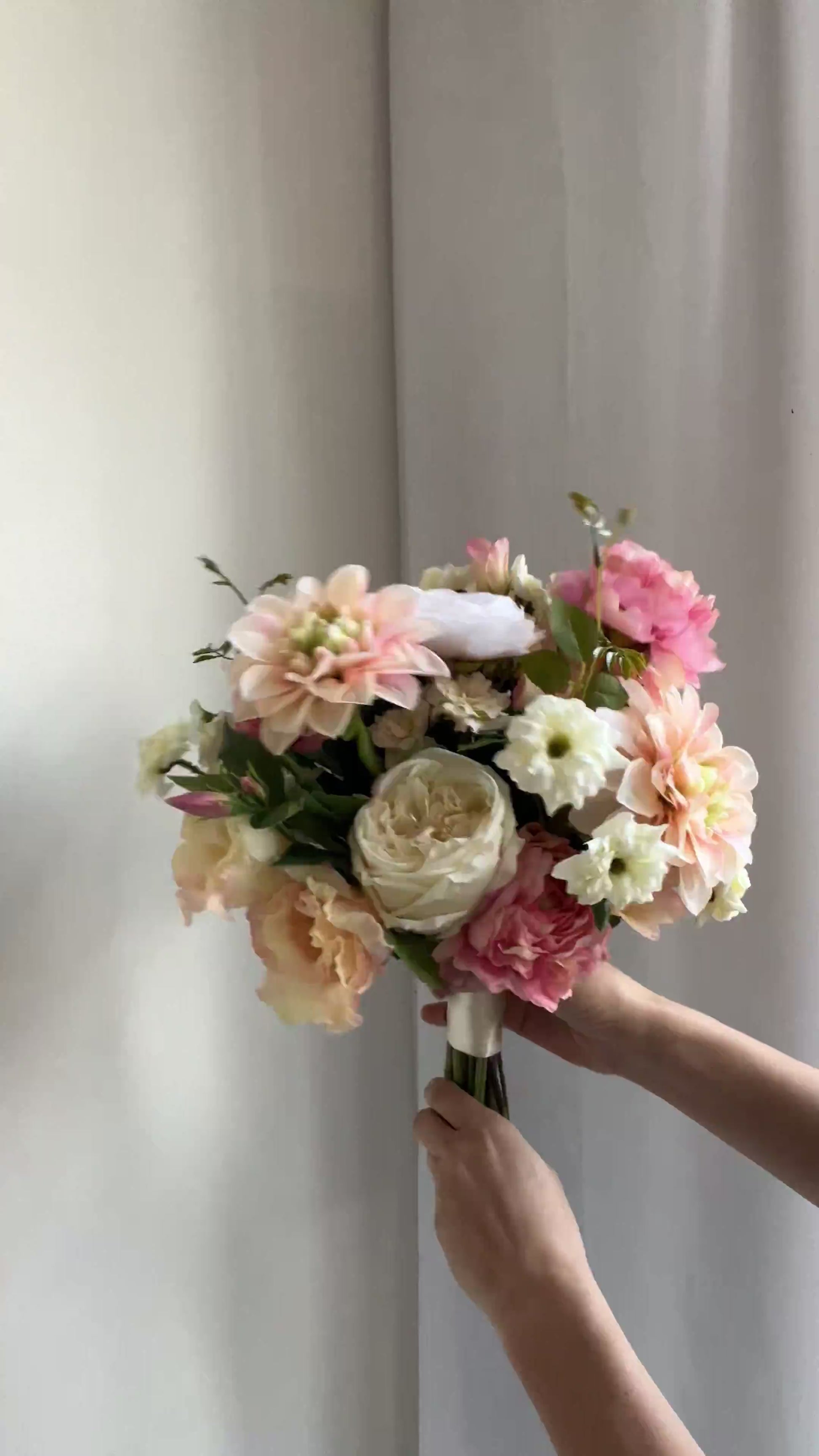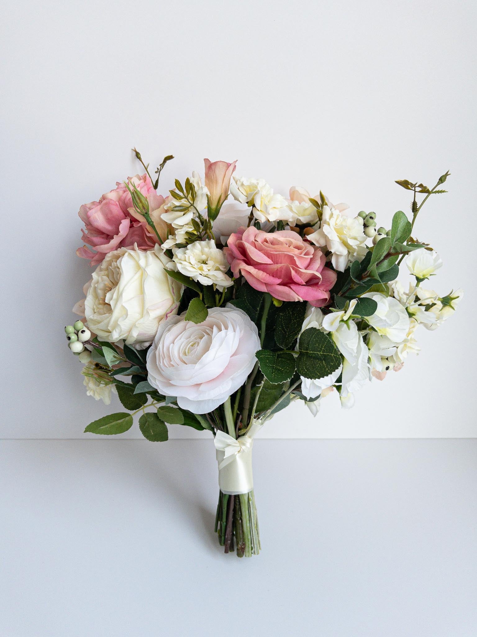 Dit bruidsboeket uit de Billy collectie is ontworpen met prachtige zijden veldbloemen en luxueuze rozen. De zachte kleuren en natuurlijk design doen elke bruid stralen! Je zal instant verliefd worden op deze frisse combinatie van ranonkels, lisianthus en rozen.